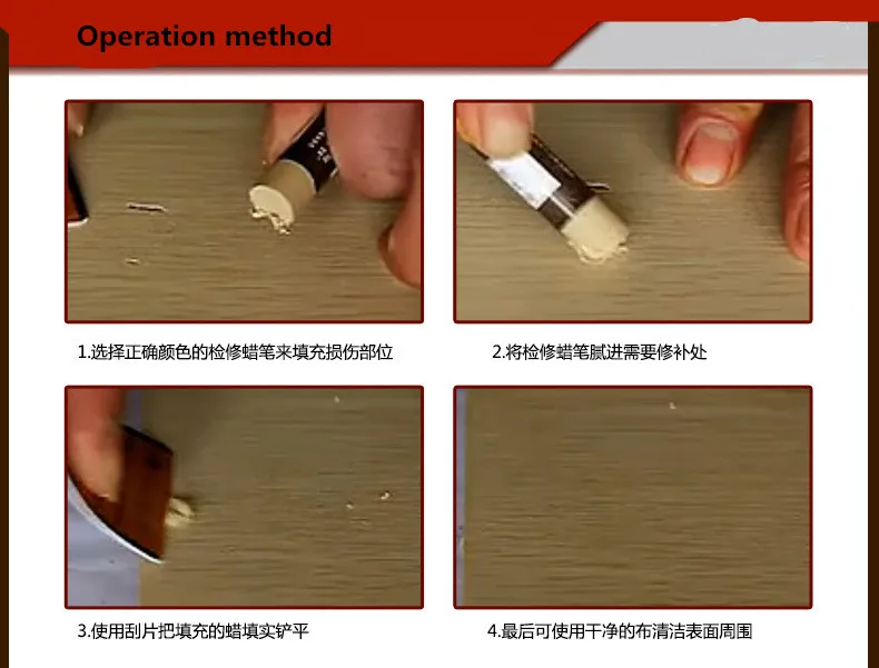 С помощью этого состава можно отреставрировать вмятины на мебели и паркете. После того, как шпатлёвка высохнет, обработанное место необходимо зашлифовать.