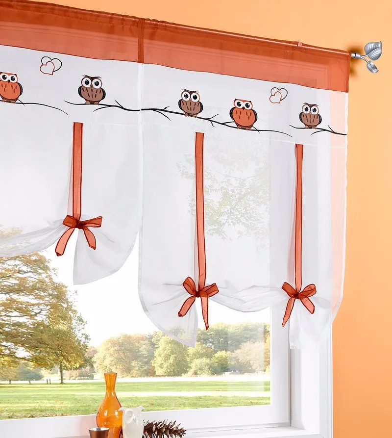 Самые яркие оттенки допустимы, но не стоит оформлять ими всю штору целиком – лучше сочетать два разных колера. Подойдет ярко-желтый, апельсиновый, фиолетовый, тыквенный, лимонно-зеленый, лазурный, светло-тициановый, золотистый, вишневый. Чрезмерно ярких, «кислотных» расцветок рекомендуется избегать – они вредны для глаз, вызывают беспокойство у детей.