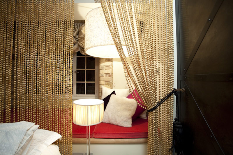 Деревянные планки закрепляются на полу и потолке, а на них закрепляется каждый отрезок каната. Получается воздушная и красивая перегородка. Таким же образом можно скрыть любую неровную стену или сделать оригинальный подвесной потолок.