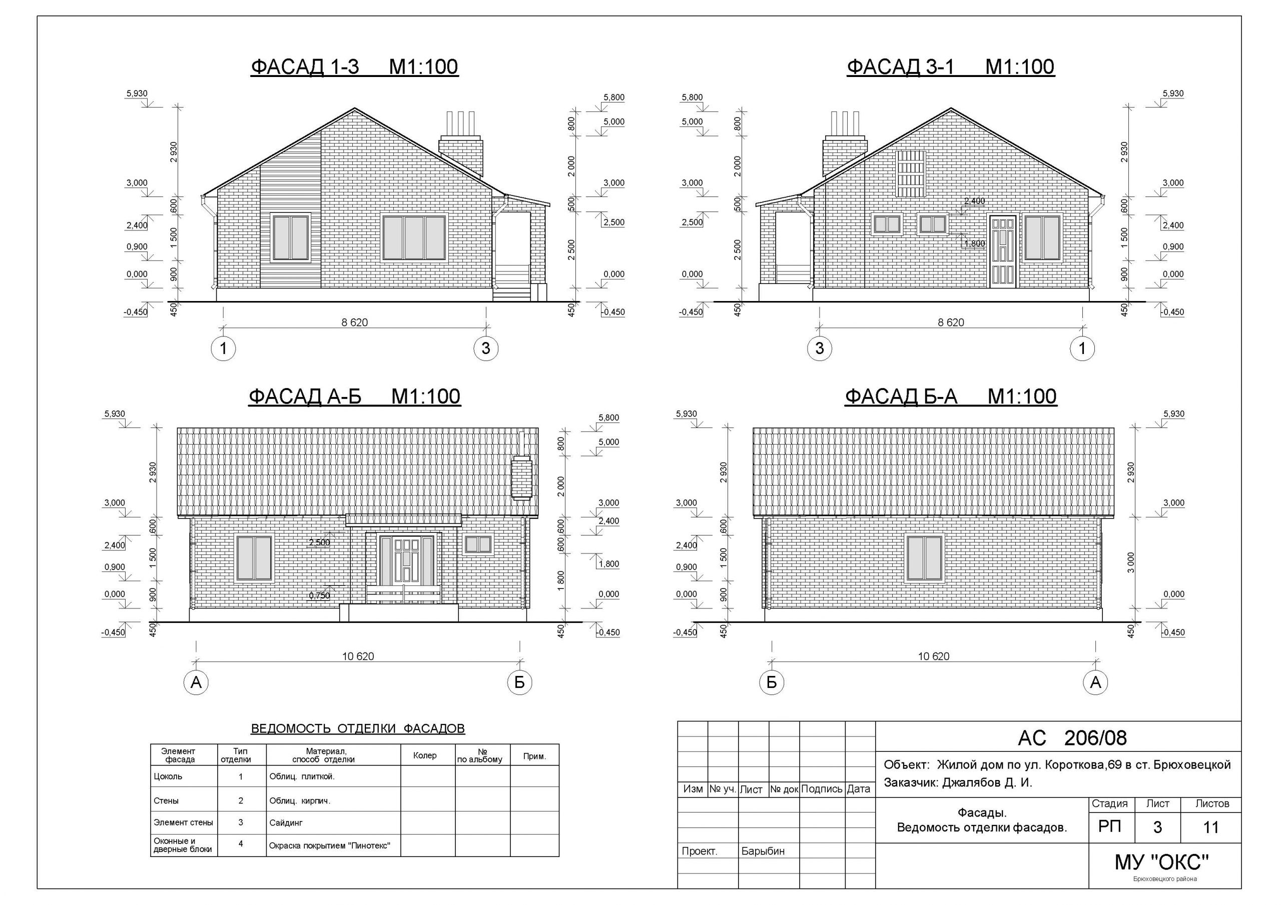 Рис. 6.3.4. Фасад 1-7 и фасад А-В крупноблочного дома