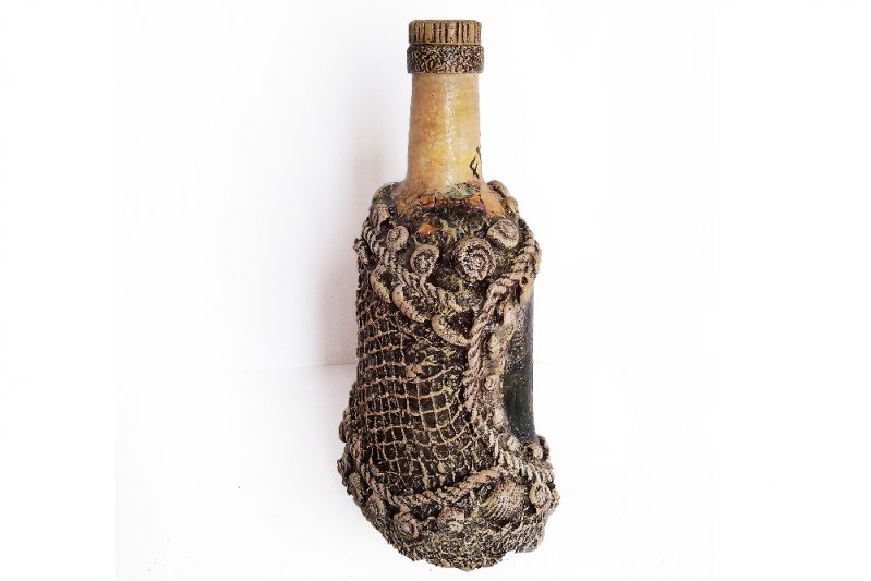 Совет. В финале бутылку можно украсить сургучной печатью. Для этого потребуется грубая веревка, сургуч и печать. Веревкой обматывают горлышко, концы оставляют висеть свободно.